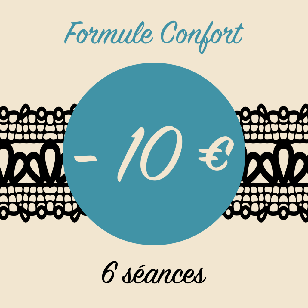 Formule Confort : 6 rendez-vous pour approfondir cette bulle de bien-être, avec 10 € de remise sur la dernière séance.